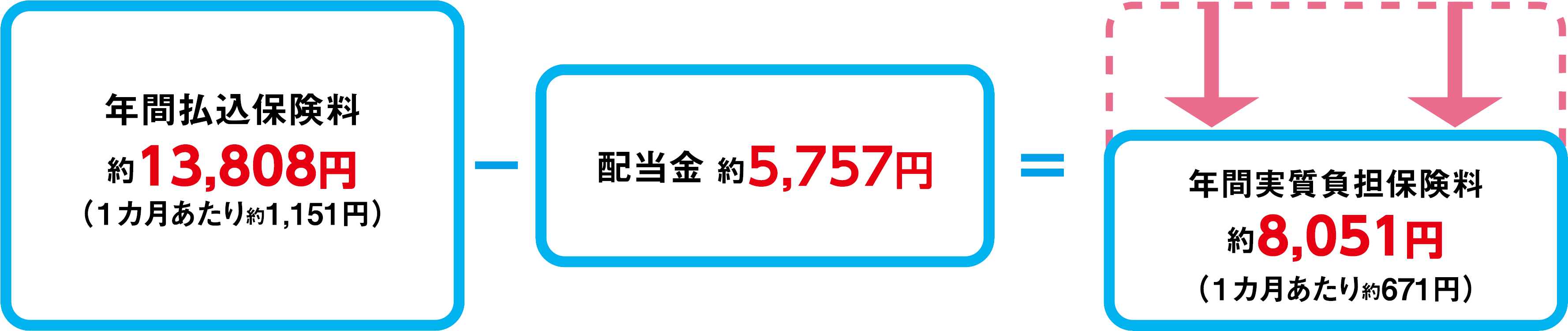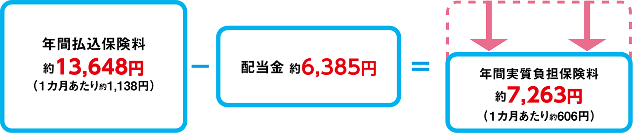 ※上記は3年間の平均年間払込保険料と配当実績に基づくものであり、将来のお受取りをお約束するものではありません。また、剰余金が生じた場合の配当金のお受取りには一定の制限があります。詳細については保険ガイドをご確認ください。